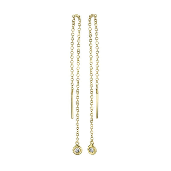 Featuring a thin chain that threads through the earlobe, allowing for a delicate and modern look with customizable length.