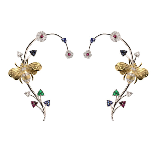 If you're looking to make a statement with your earrings this fall, this pair of bee cuff earrings is sure to make it happen. You get that late summer, early fall vibe with the bees, but there's also the lovely warm gold color and earthy colored gemstones that make this a sweater weather must-have.