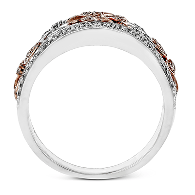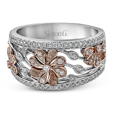 showcasing a vintage garden floral design with a contemporary flair, this band-style ring is set with .53 ctw of sparkling round-cut white diamonds. two rows of shimmering diamonds finish this ring.