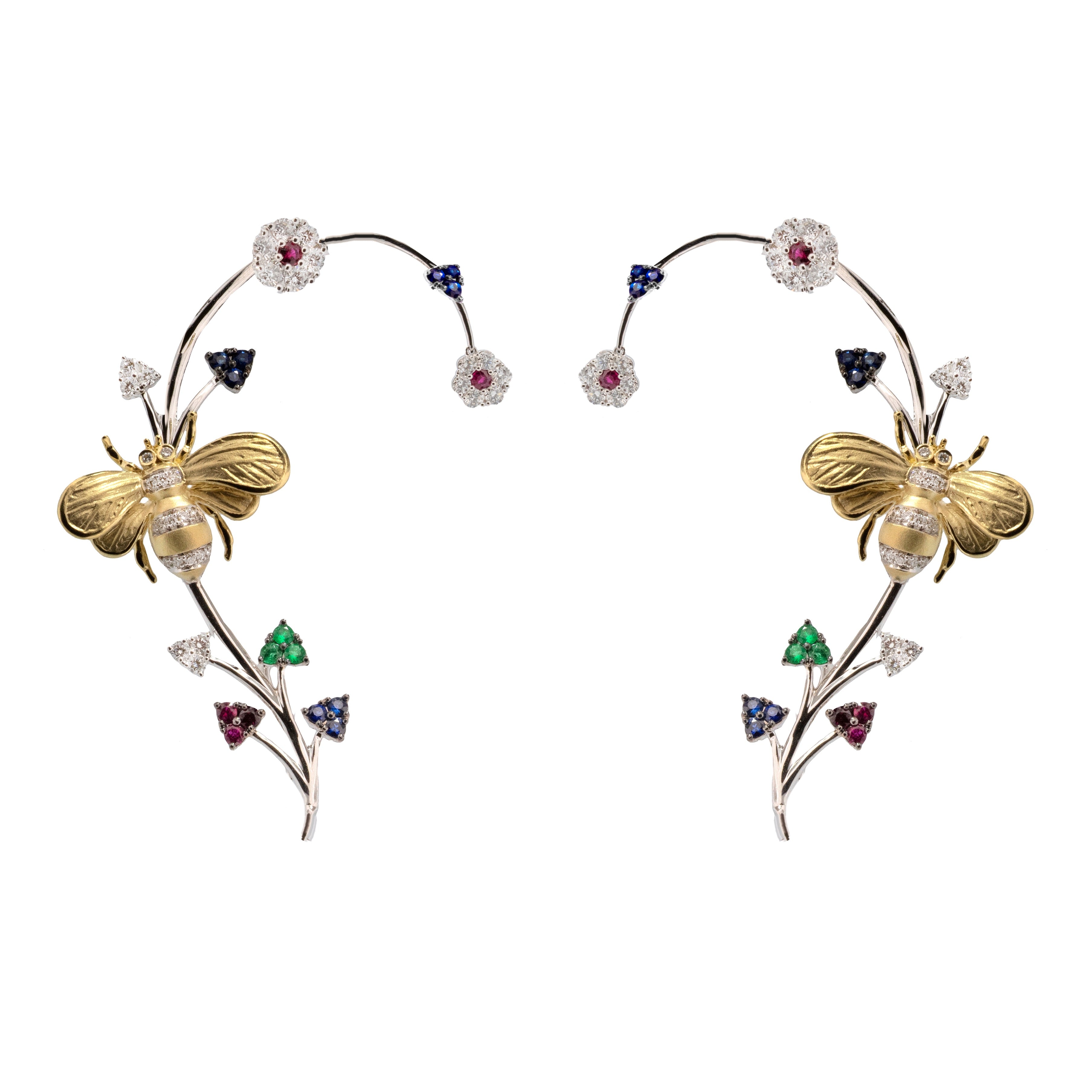Bee Cuff Earrings in 18k Gold with Diamonds