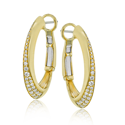 These dynamic 18k yellow gold hoop earrings contain .27 ctw of white diamonds along the exterior of their distinctive shape.