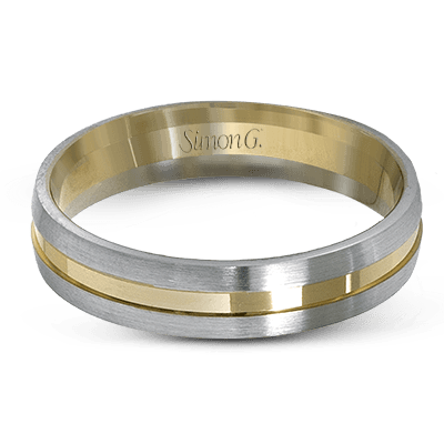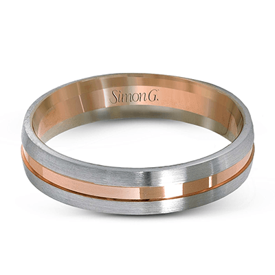 This refined men's band features a center of 14k rose gold edged with 14k white gold.