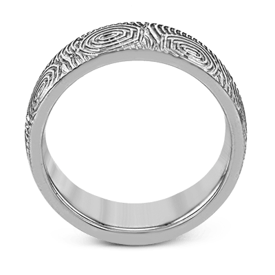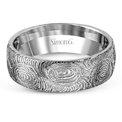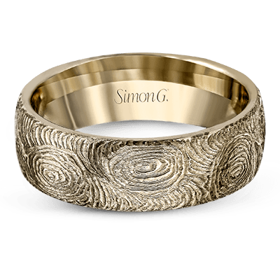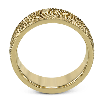 Featuring an elegant contemporary design with swirled fingerprints engraved in the surface, this men's rose gold wedding band makes an eye-catching statement.