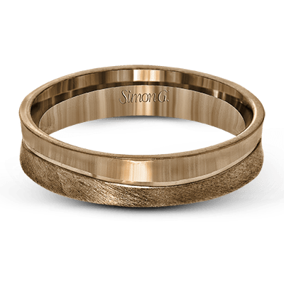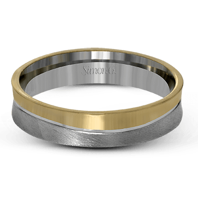 This contemporary men's band has a slim width and a two-toned design with rose gold on one side and white gold on the other.