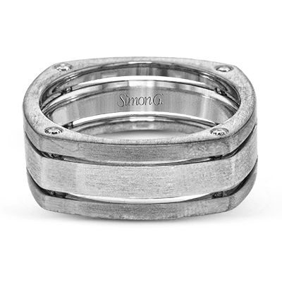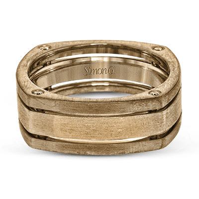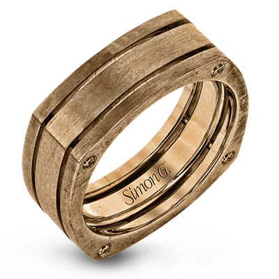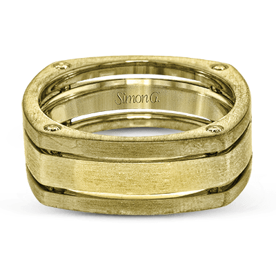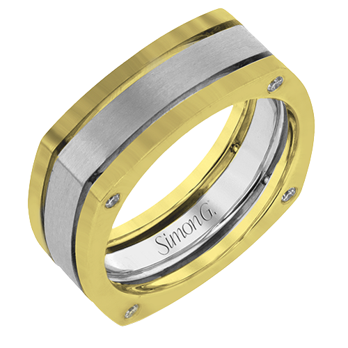 A center band of 14k white gold is surrounded by 14k yellow gold edging in this modern style of men’s wedding band.