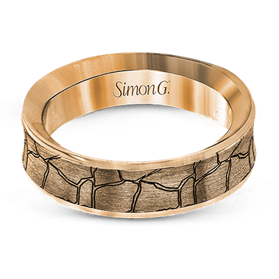 This two-toned 14k gold band features a unique crackled design along its rose gold exterior, and has a smooth high polish white gold interior.