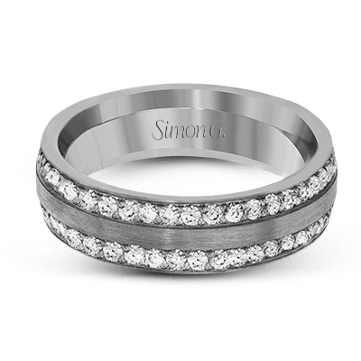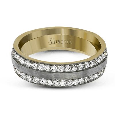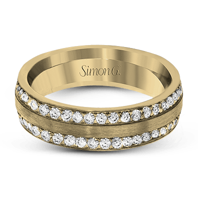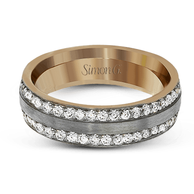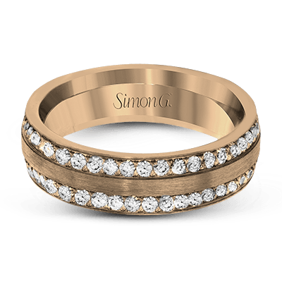 This band creates a distinctive look with a double row of white diamonds totaling 1.00 ctw set in white gold, with a rose gold interior.