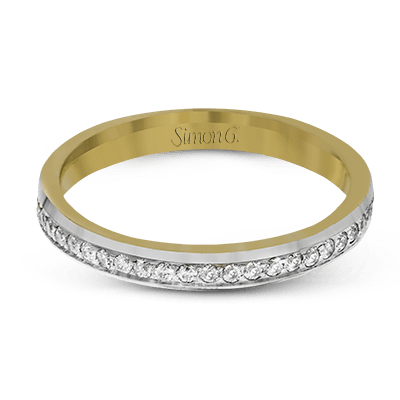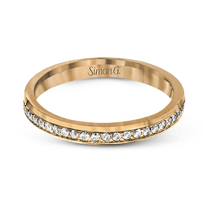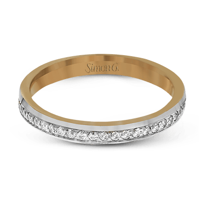 This classic wedding band features .27 ctw of white diamonds set in white gold, while the interior of the ring is rose gold.