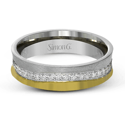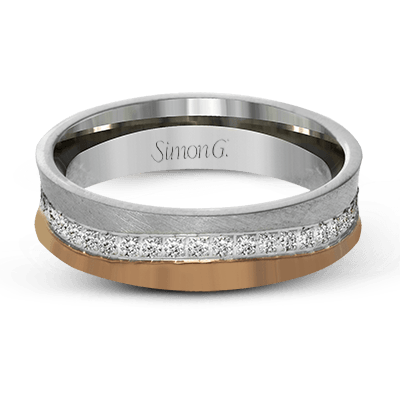 This two-toned unisex ring has a row of diamonds down the center totaling .36 ctw, and white gold on one side, and rose gold on the other.