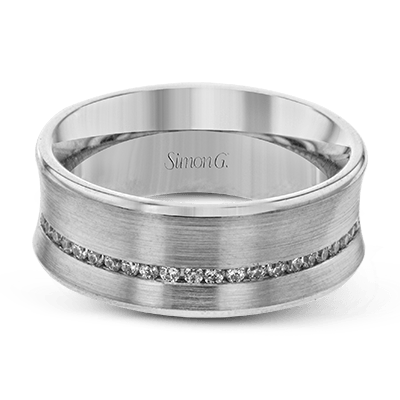 This understated wedding band in brushed white gold features .38 ctw of white diamonds in a subtle yet eye-catching accent