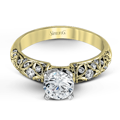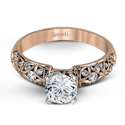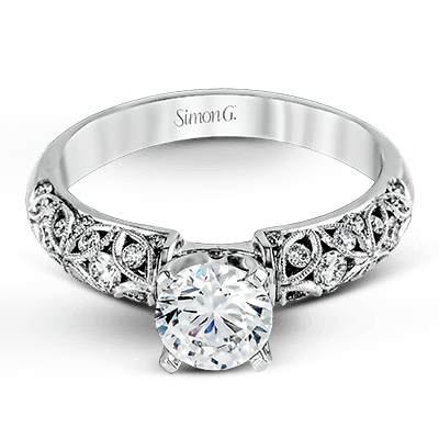 Vintage White Gold Floral Diamond Engagement Ring - LP1582-D