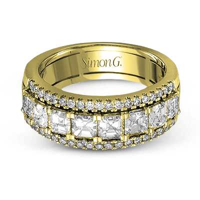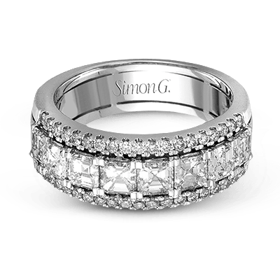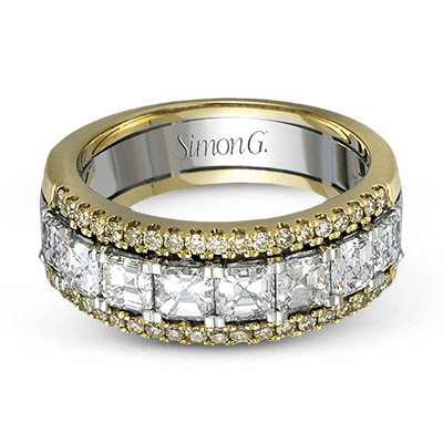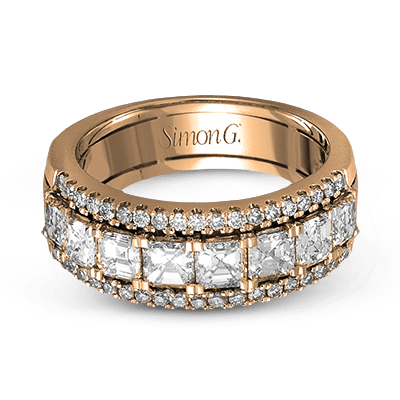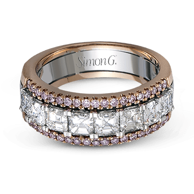 this lovely contemporary white and rose gold band is set with 1.40 ctw asscher cut diamonds and accented by .28 ctw pink diamonds.