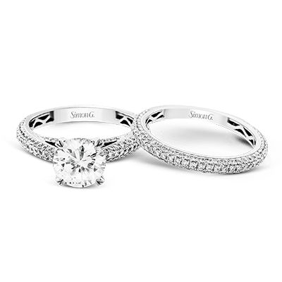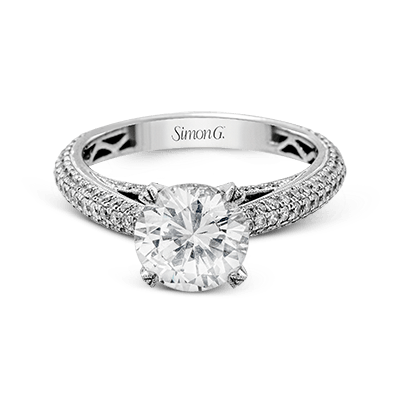 this classically styled white gold engagement ring is set with 1.30 ctw of shimmering white diamonds in a stunning design.