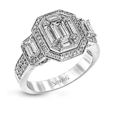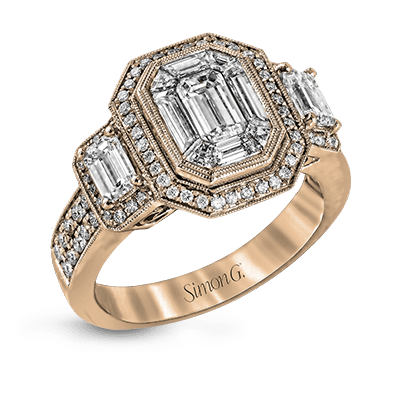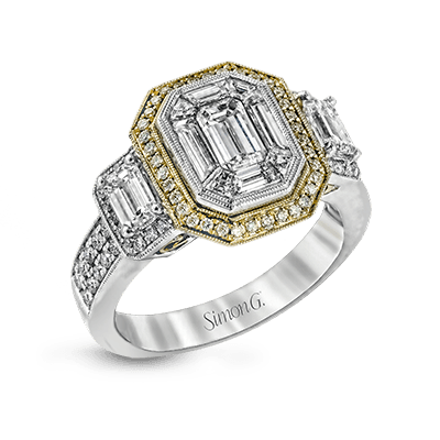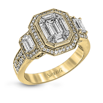 Stunning Emerald-Cut Halo Engagement Ring in 18k Gold with Diamond Accents