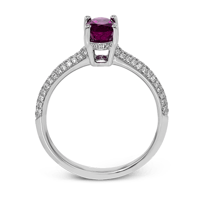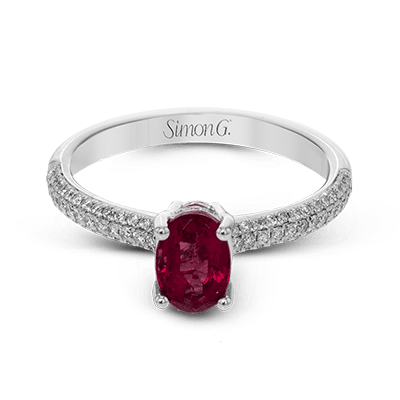 This graceful ring features .31 ctw of white diamonds set into the ring with a .90 ctw ruby.
