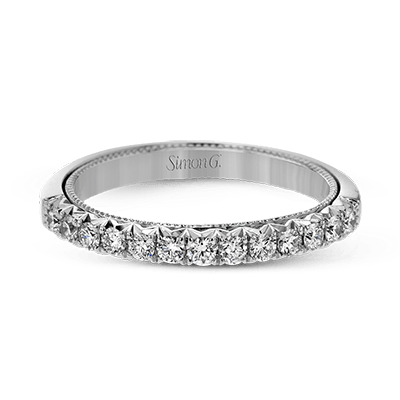 This band contains .35 ctw of white diamonds, and an interior of rose gold for a romantic touch.