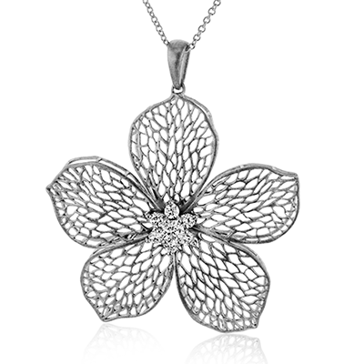 A beautiful flower is spun from the finest gold in this exquisite pendant, set with .31 ctw of diamonds at its center.