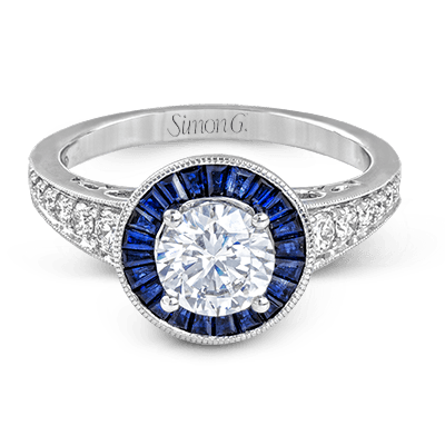 18k White Gold Baguette Sapphire Halo Engagement Ring LR1028