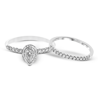 A refined .18 ct pear shaped diamond shines in this ring set which contains .35 ctw of white diamonds. these rings are perfect for stacking!