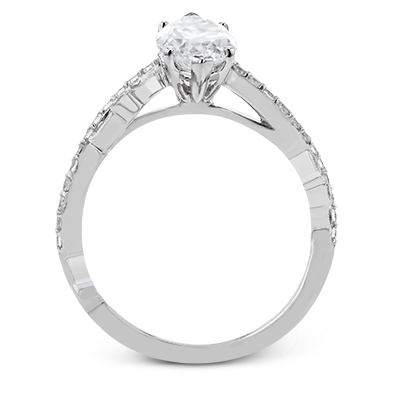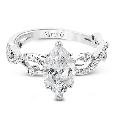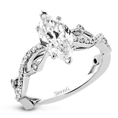 A unique twisting design on the band makes this engagement ring stand out from the rest. this particular style is made to perfect hold a marquise shaped center stone.