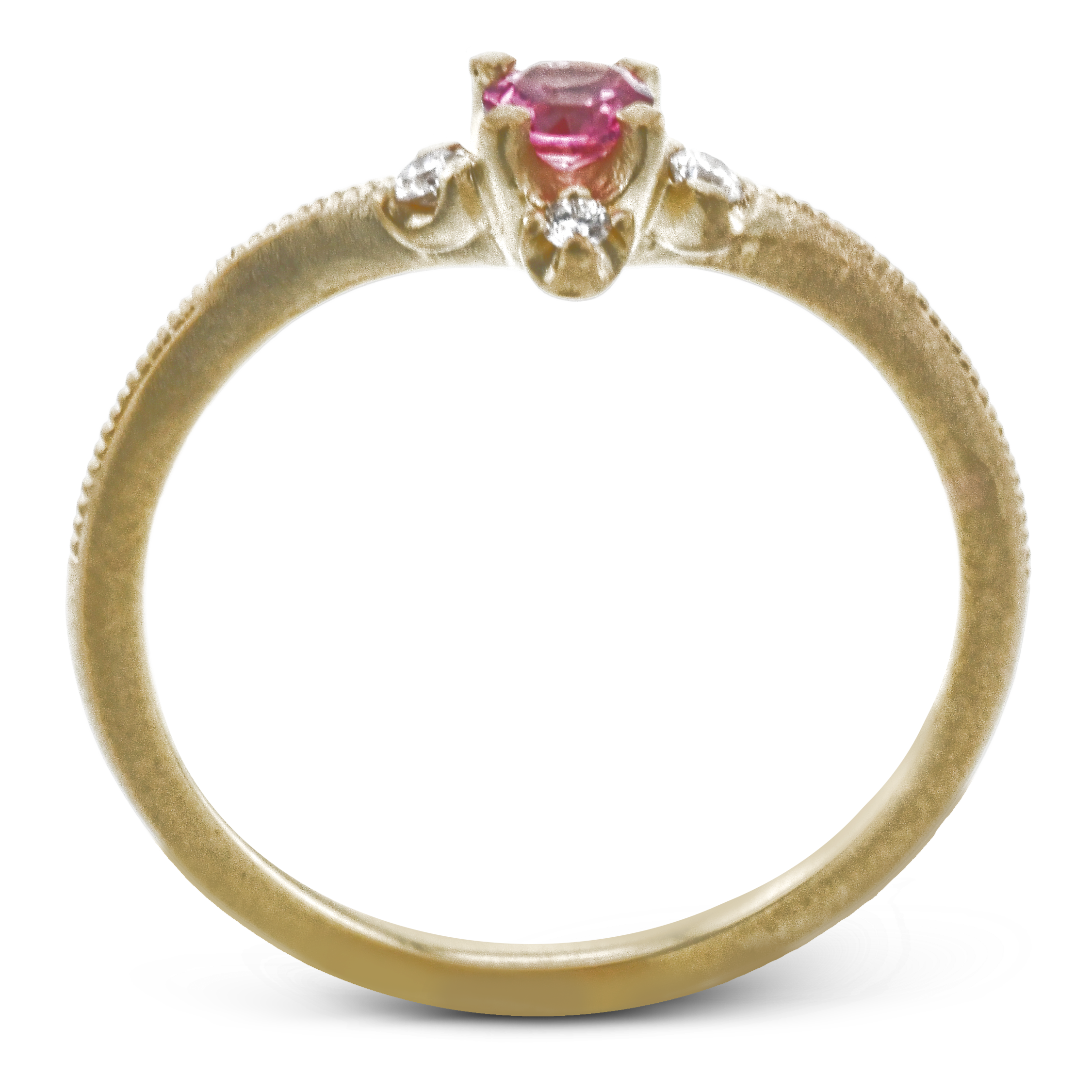 A wonderful addition to our paradise collection, this ring has a slightly pointed shape so it fits perfectly with other rings, and features a bright spinel center stone.