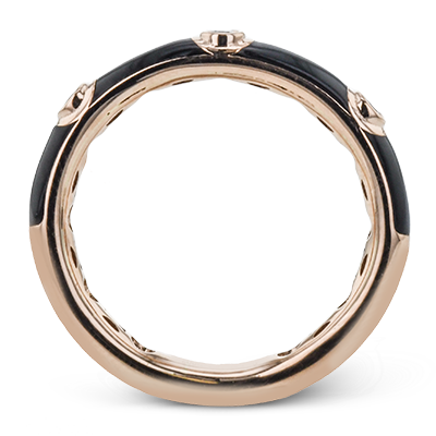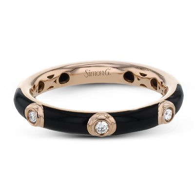 A sleek modern classic, this 18k gold and enamel ring contains .07 ctw of bezel set white diamonds.