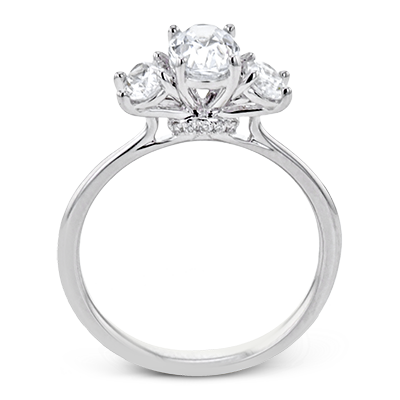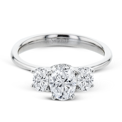 This 18k white gold engagement ring is a updated take on a classic three stone design, this time rendered with three sparkling oval shaped diamonds.