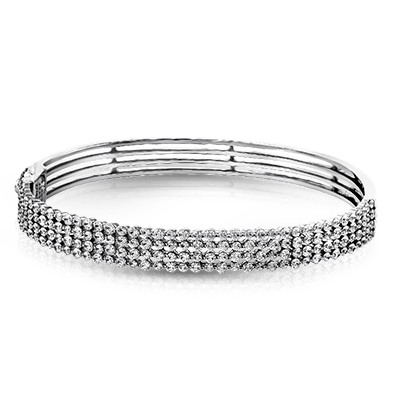 Three rows of 3.75 ctw of white diamonds make quite the statement in this 18k gold bangle bracelet.