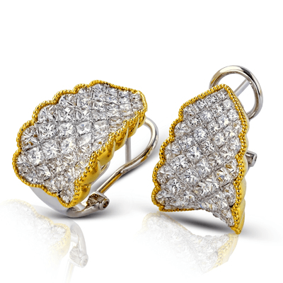 featuring a dramatic contemporary style, these two-tone earrings are highlighted by a stunning 6.06 ctw of princess cut diamonds set in white and yellow gold.