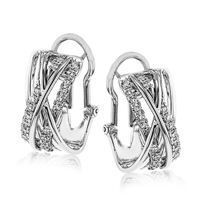 These gorgeous, contemporary earrings glimmer with .74 ctw of round white diamond accents against beautiful three-tone gold.