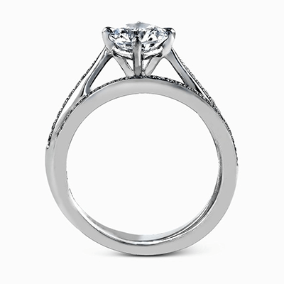 the elegant design of this classic white gold engagement ring and wedding band is complemented by .21 ctw of glimmering round cut white diamonds.