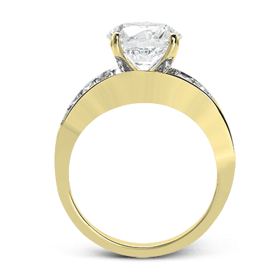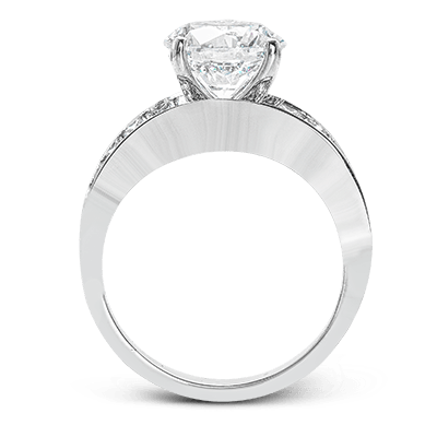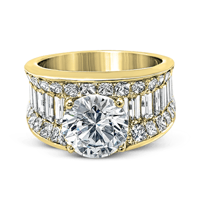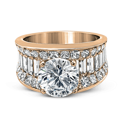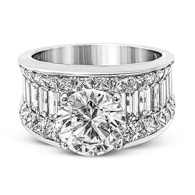 Dramatic and bold, this white gold contemporary engagement ring is accented by 1.87 ctw princess cut white diamonds and 1.67 ctw glistening baguette white diamonds.