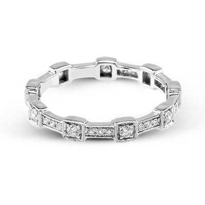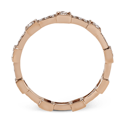 This rose gold band form a modern style band set with .33 ctw of striking round cut white diamond accents. perfect for stacking.