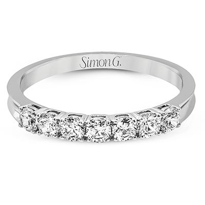 Elegantly simple, this classically styled white gold band is accented by the presence of .50 ctw of shimmering round cut white diamonds.