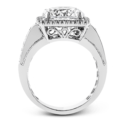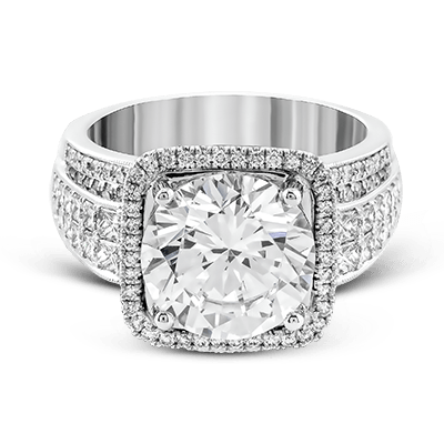 the elegant contemporary design of this white gold engagement ring is highlighted by .34 ctw round cut white diamonds complemented by .72 ctw princess cut diamonds.