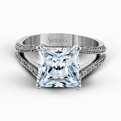 this lovely classic white gold engagement ring is accentuated by .34 ctw of round cut white diamonds in an eye-catching openwork design.