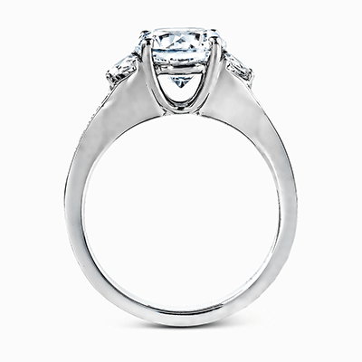 this classically designed white gold ring is emphasized by .18 ctw of white diamonds and .51 half moon shaped diamonds to create a memorable setting.