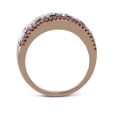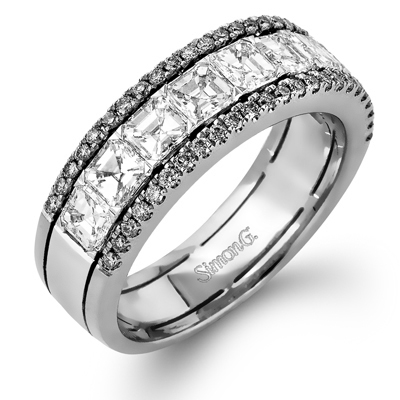 the classic design of this white and rose gold band is highlighted by .28 ctw round cut pink diamonds with 1.67 ctw of asscher cut diamonds accents.