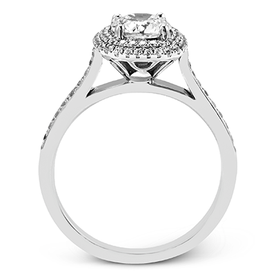 showcasing a dazzling halo, this contemporary white gold wedding set is highlighted by .45 ctw of arresting round cut white diamonds.