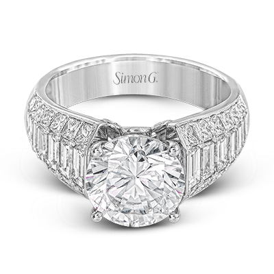 This significant engagement ring is sure to make a statement with 1.13 baguette diamond side stones outlined my .98 ctw of princess cut diamonds.