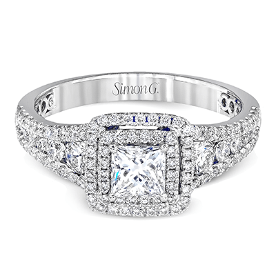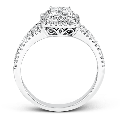 this lovely contemporary styled white gold engagement ring features a dazzling setting of .66 ctw of round cut white diamonds.