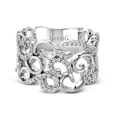 featuring a romantic vintage-inspired design, this intricate, swirling white gold ring is accentuated by .35 ctw glistening round cut white diamonds.