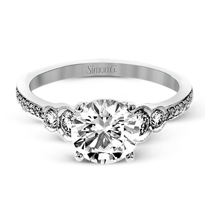 Timelessly beautiful, this white gold engagement ring's stunning design features .44 ctw of round white diamonds flanking the center stone with a lovely tapered effect.