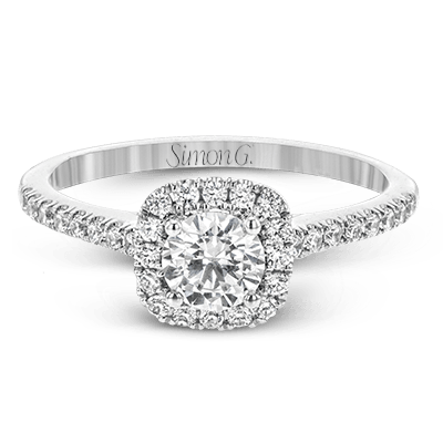 White Gold Halo Engagement Ring with Round Diamond Accents