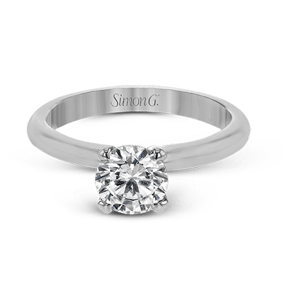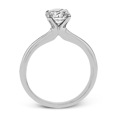 This sleek, unadorned white gold ring provides an elegantly modern setting for a single, central stone.