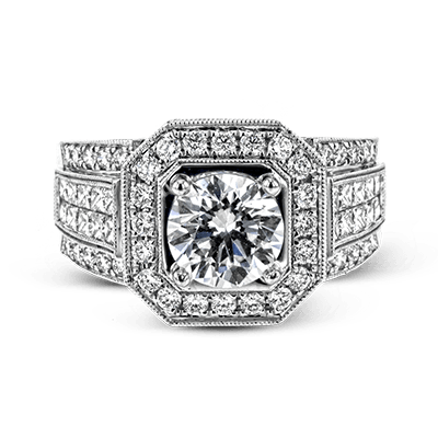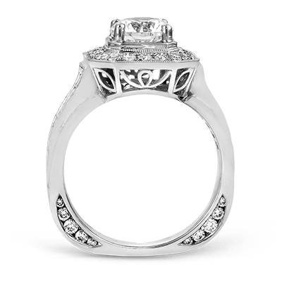 This spectacular white gold ring is full of dazzling details, with .71 ctw of round white diamonds and .56 ctw of princess cut white diamonds as well as delicate filigree accents.
