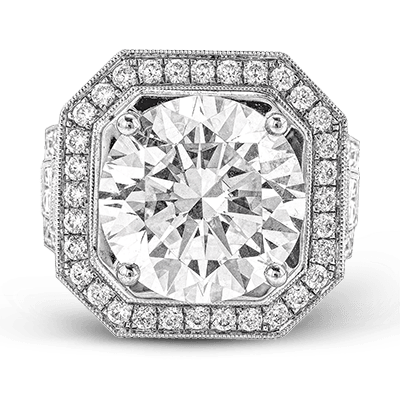 this modern white gold presents an impressive setting with 1.00 ctw round cut white diamonds and .80 ctw princess cut diamonds.