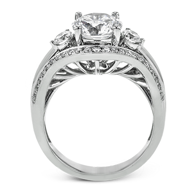 Opulent yet sophisticated, this intricately detailed white gold ring features a dazzling .62 ctw of round white diamonds in multiple sizes.