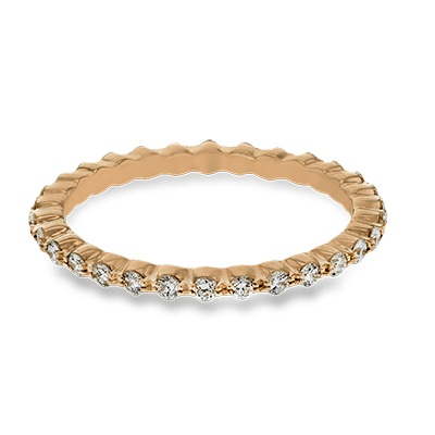 Featuring a modern stackable design, this rose gold band is accented by .40 ctw round cut white diamonds.