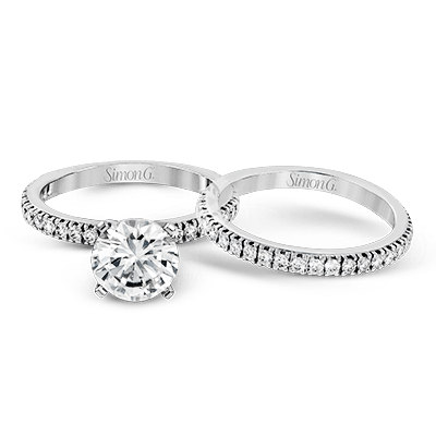 This beautiful 18k white gold wedding set contains a stunning .75 ctw of white round brilliant diamonds.